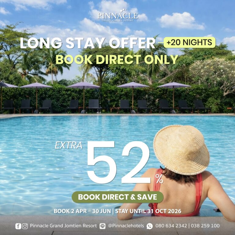 Welcome to Pinnacle Grand Jomtien Resort, a Pattaya Beach Resort! Enjoy our wide private beachfront and breathtaking sunset views.