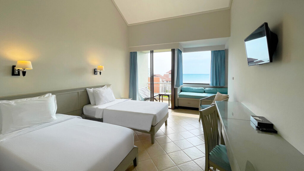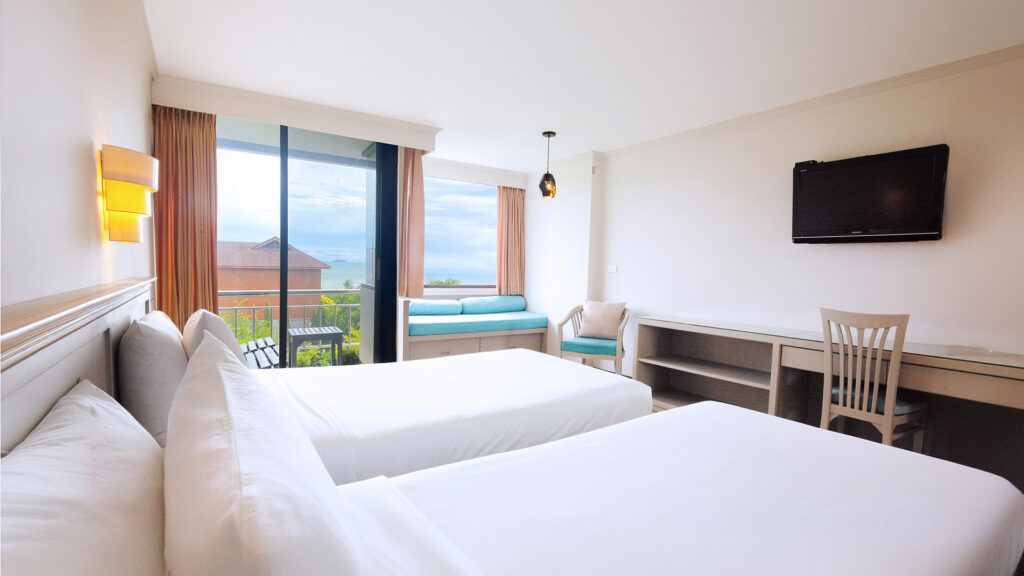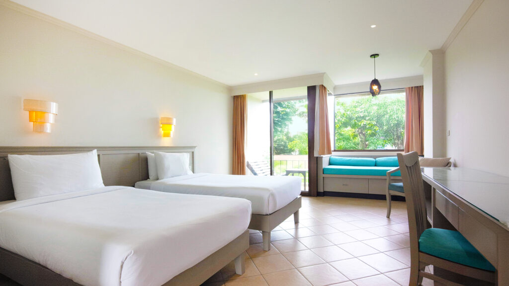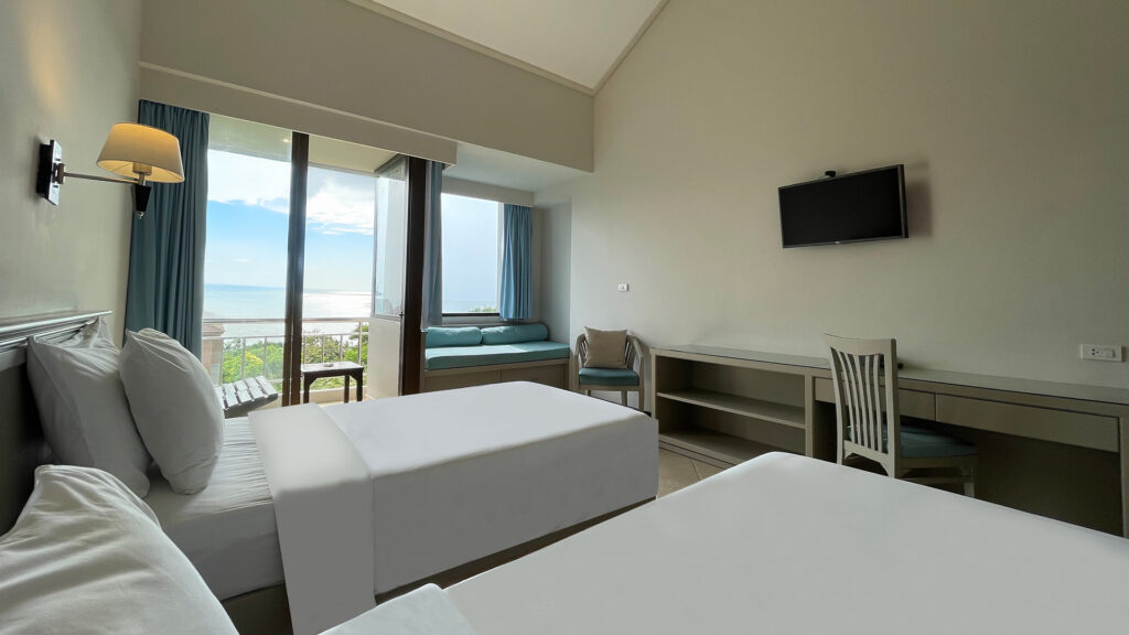 The newly refreshed Superior Twin Rooms feature relaxing decor, two comfortable twin beds, and a mini sofa by the balcony. Enjoy ample natural light, and a cozy seating area for relaxation. Located near the resort’s meeting rooms facilities, this room is perfect for friends, travel buddies or families. Elevator access to every floor.