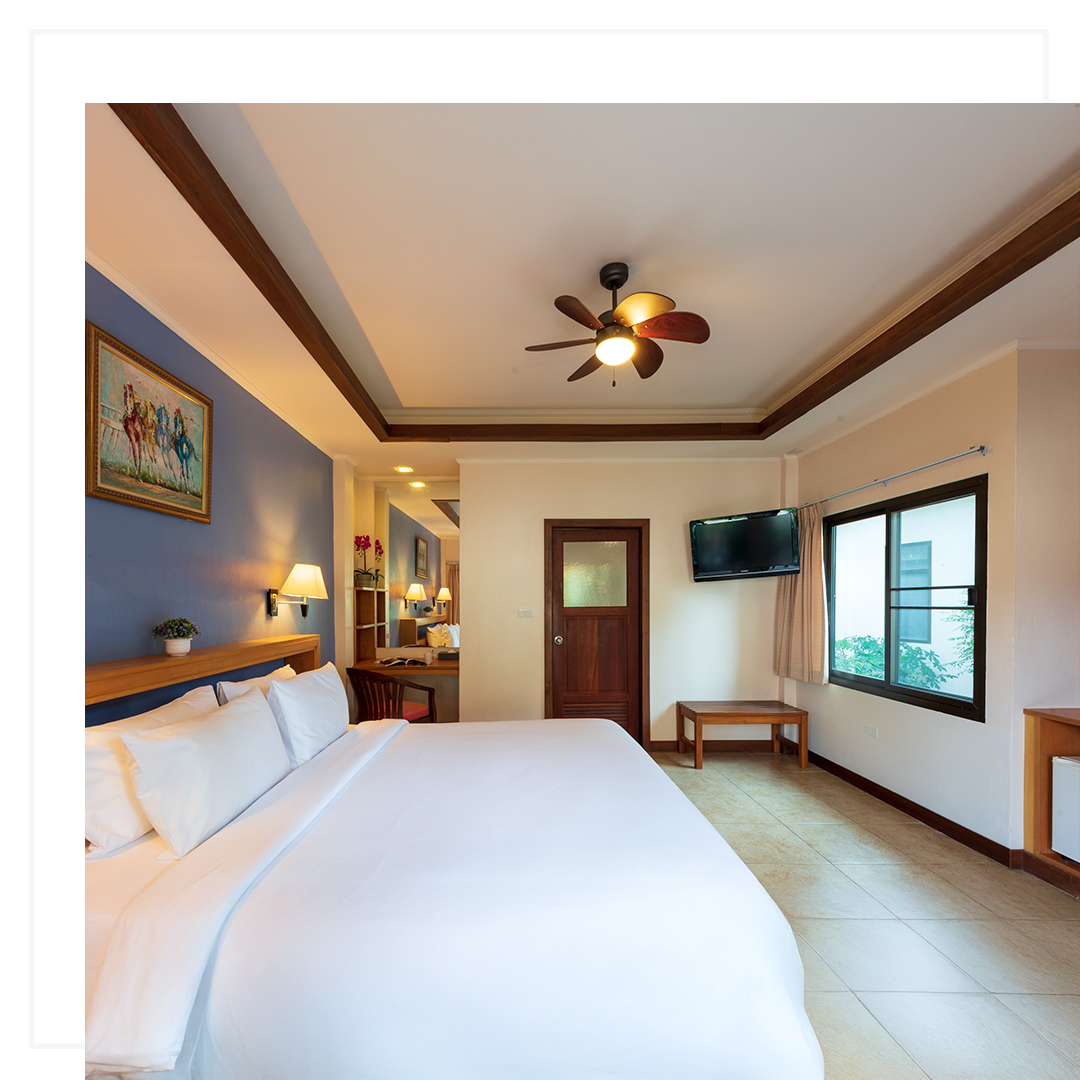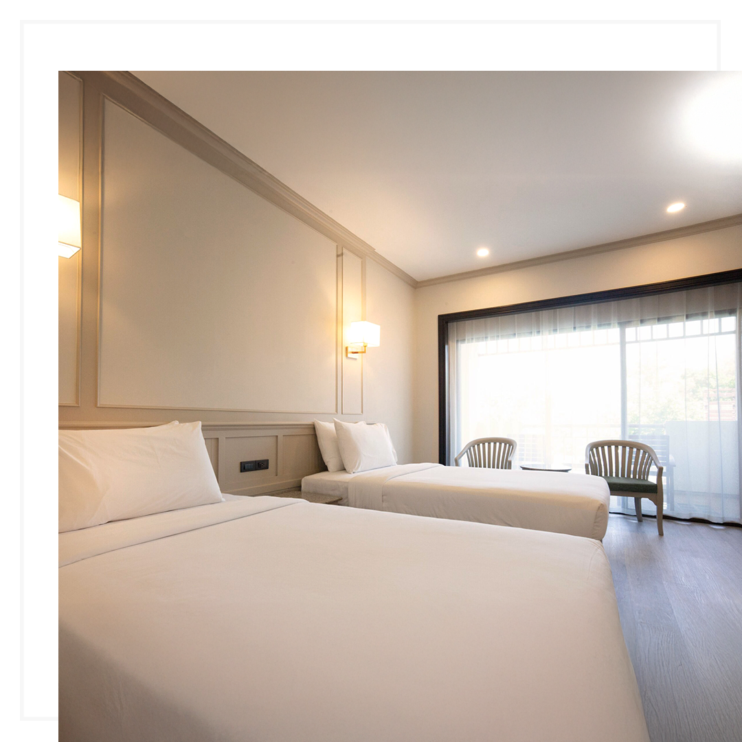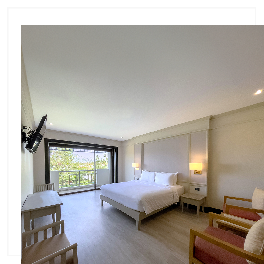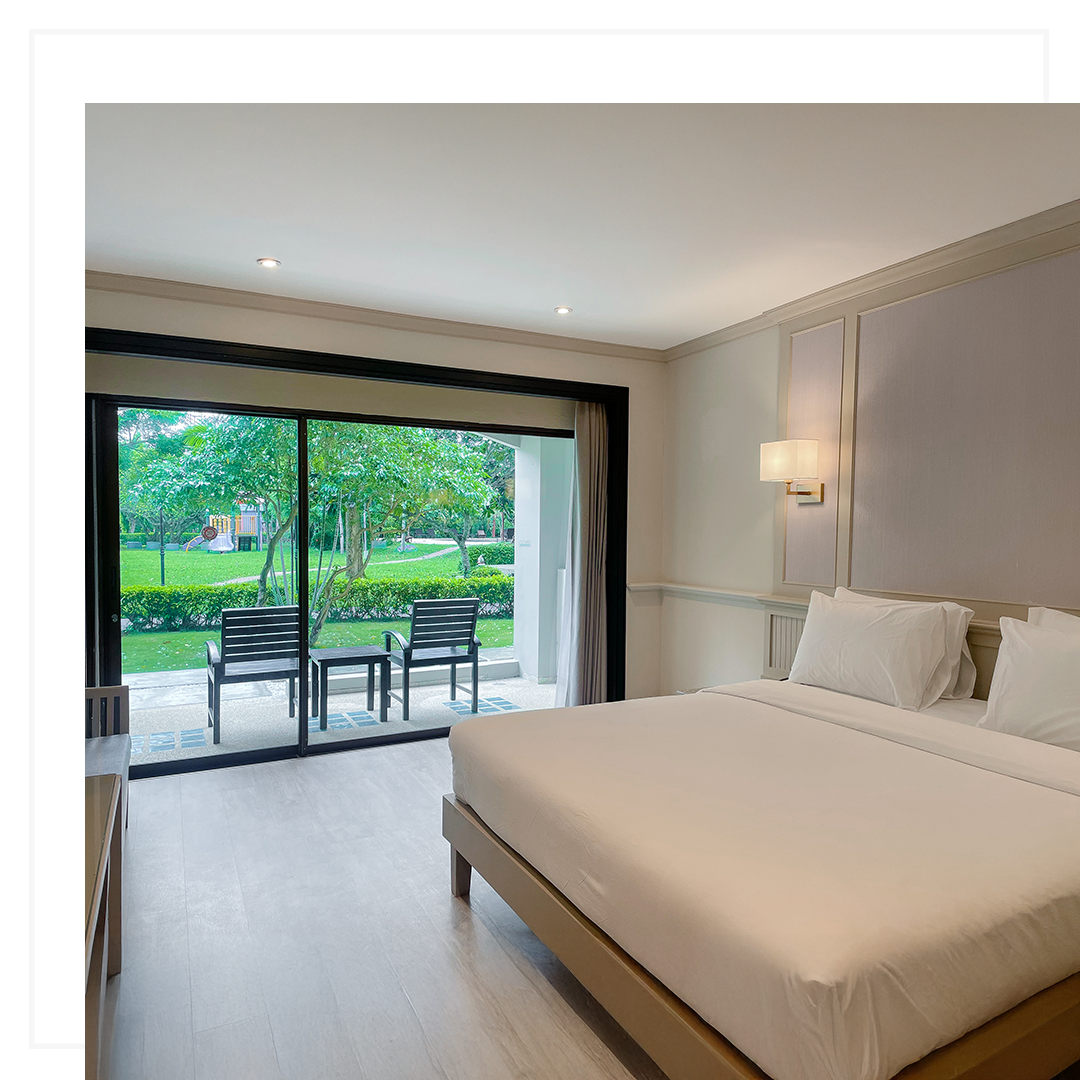 เราได้ปรับปรุงพื้นที่รีสอร์ทใหม่ โดยการตกแต่งอย่างหรูหราเพื่อเพิ่มความสะดวกสบาย ห้องพักที่นี่มอบวิวที่สวยงามของสวนและสระว่ายน้ำ พร้อมทั้งรับประกันความเป็นส่วนตัวสูงสุด ทำให้คุณได้ผ่อนคลายและพักผ่อนอย่างเต็มที่ตลอดการเข้าพักของคุณ
