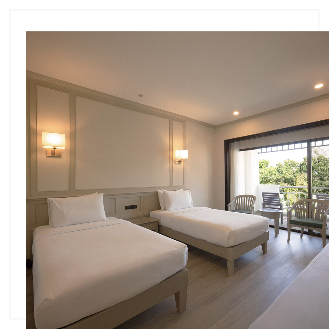 โรงแรมของเรามีห้องพักทั้งหมด 345 ห้อง ซึ่งแต่ละห้องมองเห็นวิวสวนที่เขียวขจีของเรา นอกจากนี้ยังมีห้องพักที่มีวิวทะเลที่สวยงาม ช่วยให้คุณได้สัมผัสบรรยากาศริมชายฝั่งอย่างเต็มที่ เรามีห้องพักหลากหลายประเภทเพื่อตอบสนองทุกความต้องการ ไม่ว่าคุณจะเดินทางกับครอบครัว คู่รัก หรือกลุ่มเพื่อน โรงแรมของเรามีสิ่งอำนวยความสะดวกครบครัน เพื่อให้คุณได้พักผ่อนอย่างเต็มที่ในบรรยากาศที่ผ่อนคลาย