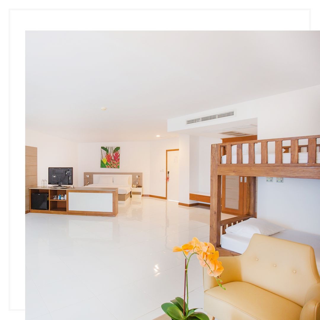 ห้องพักสำหรับครอบครัวเหมาะสำหรับการพักผ่อนกับครอบครัว พร้อมทั้งห้องสวีทกว้างขวางที่เหมาะสำหรับทั้งครอบครัวและคู่รัก ซึ่งมีสิ่งอำนวยความสะดวกครบครัน เรามีคลับสำหรับเด็กและสนามเด็กเล่นสำหรับเด็ก ๆ ด้วย